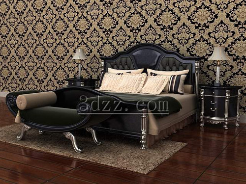 Description:European-style bed, bedrooms, bed end stool, table lamps, bedside cabinet, double bed, wood bed, model download, 3D, model