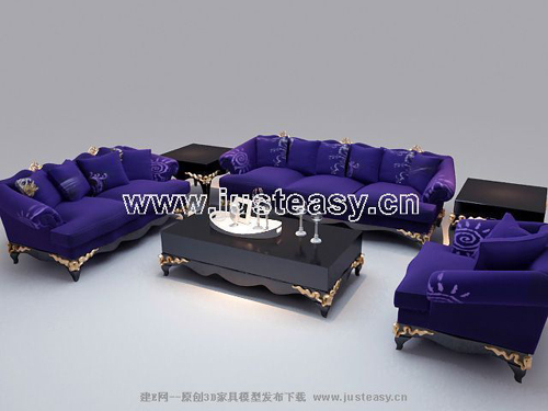 Description:European-style combination of purple sofa, modular furniture, sofa combination, Continental sofa, coffee table, sofa, 3D models, model download