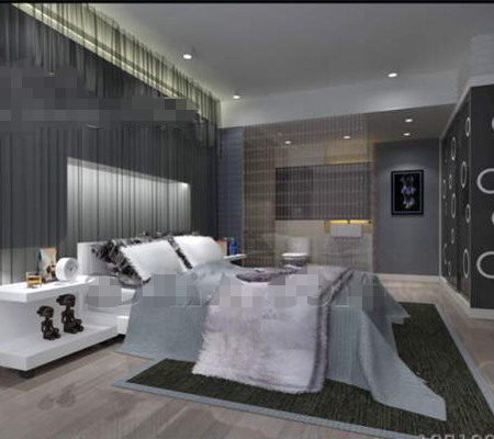 Description:Modern minimalist silver-gray bedroom