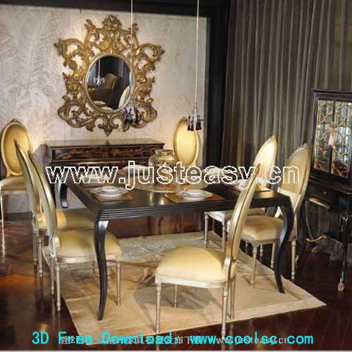 Description:Low-key style, luxury dining table and chair combination, furniture, table, 3D model