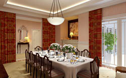 Sun's interior space, dining and living room, European style