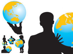 Earth and People silhouettes vector material