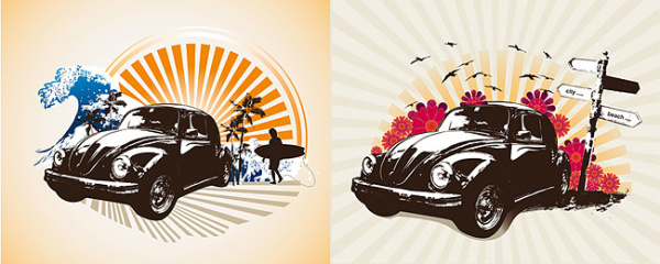 Description:2 retro classic cars theme illustrator vector material