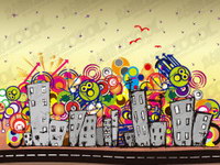 Lovely city illustrator vector material
