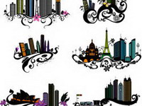 10 trend of urban architecture and flowers Vector material