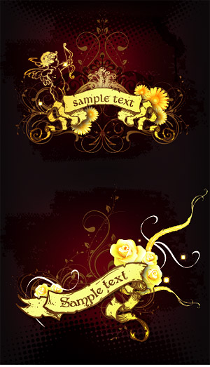 Both gold ornate European-style pattern banner vector materi