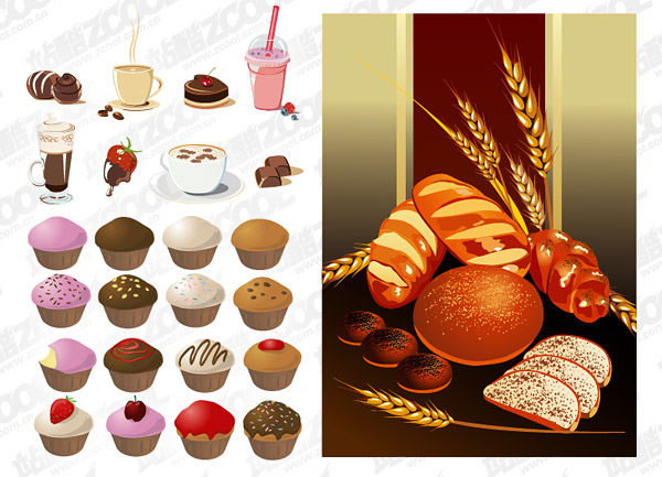 Description:Cakes, bread, beverage and other vector material