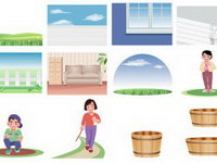 Cartoon characters and scenery material vector illustrations
